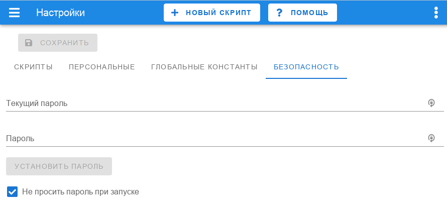 Укажите пароль для доступа к программе. Если вы хотите отключить вход по паролю, то укажите Текущий пароль, а этот параметр оставьте пустым.